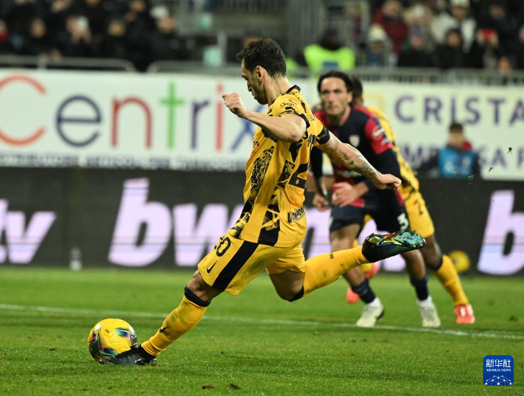 12月28日,国际米兰队球员恰尔汗奥卢在比赛中罚入点球。新华社发(迭戈摄)