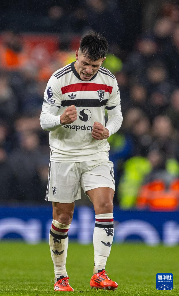 1月5日,曼彻斯特联队球员利桑德罗·马丁内斯在比赛中庆祝进球。新华社发