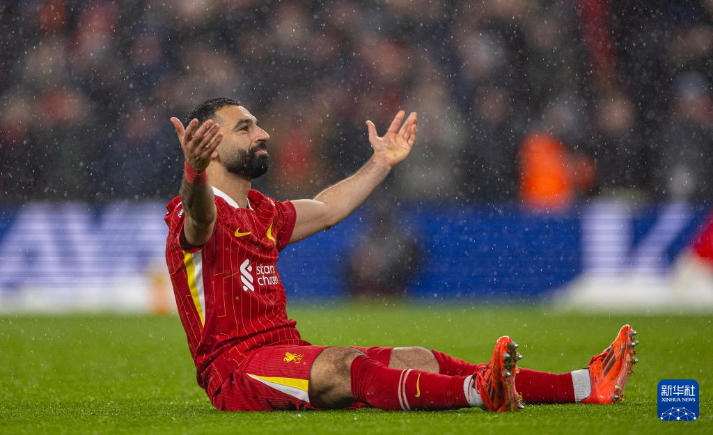 1月5日,利物浦队球员萨拉赫在比赛中庆祝进球。新华社发