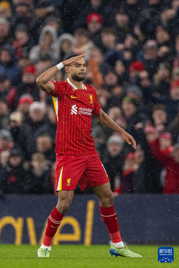 1月5日,利物浦队球员加克波在比赛中庆祝进球。新华社发