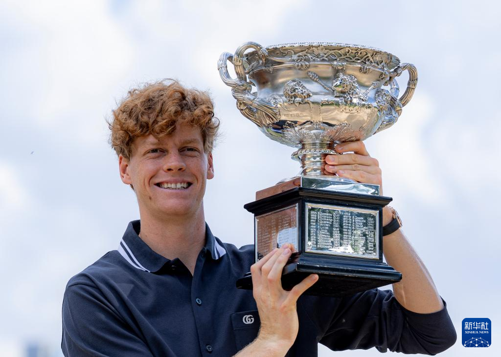 1月27日,辛纳展示奖杯。新华社发(储晨摄)