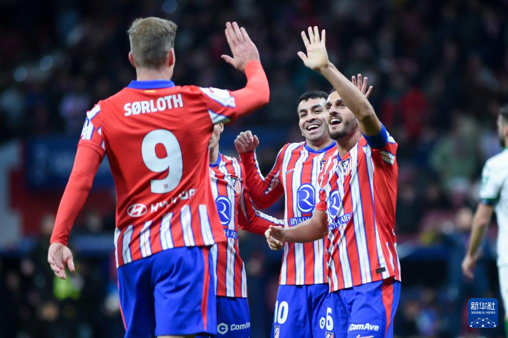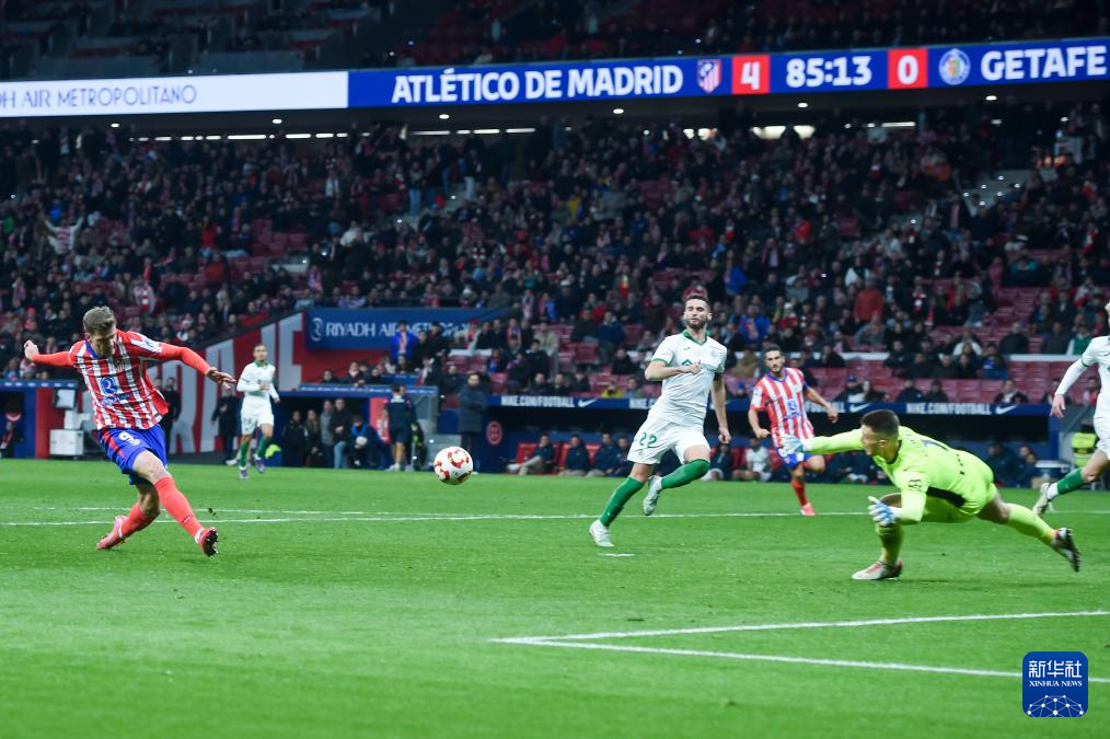 当日,在2024-2025赛季西班牙国王杯足球赛四分之一决赛中,马德里竞技队主场5比0战胜赫塔菲队,晋级半决赛。