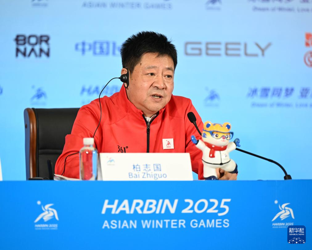 2月6日,亚冬会主新闻发言人柏志国在媒体吹风会上发言。