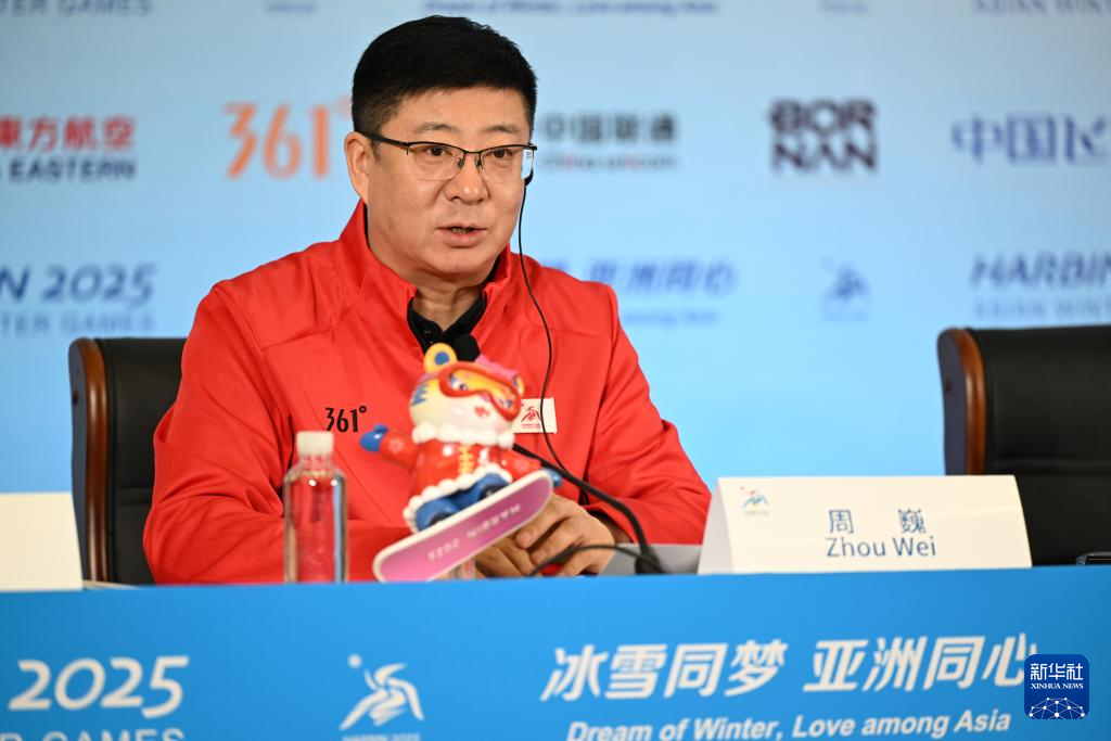 2月6日,亚冬会组委会大型活动部副部长、新闻发言人周巍在媒体吹风会上发言。