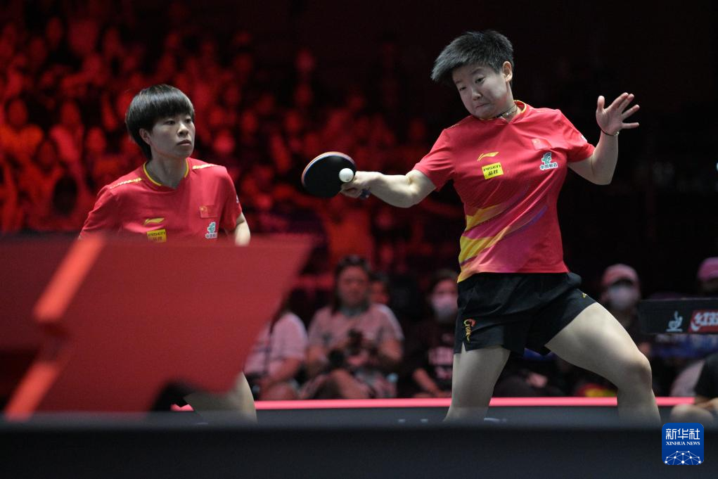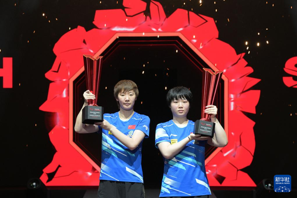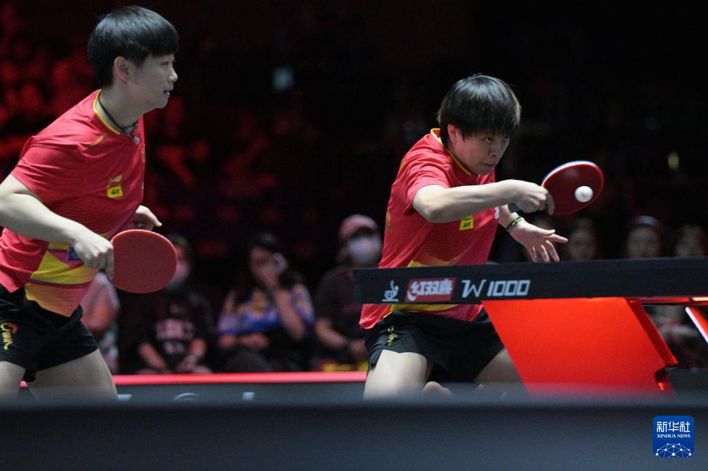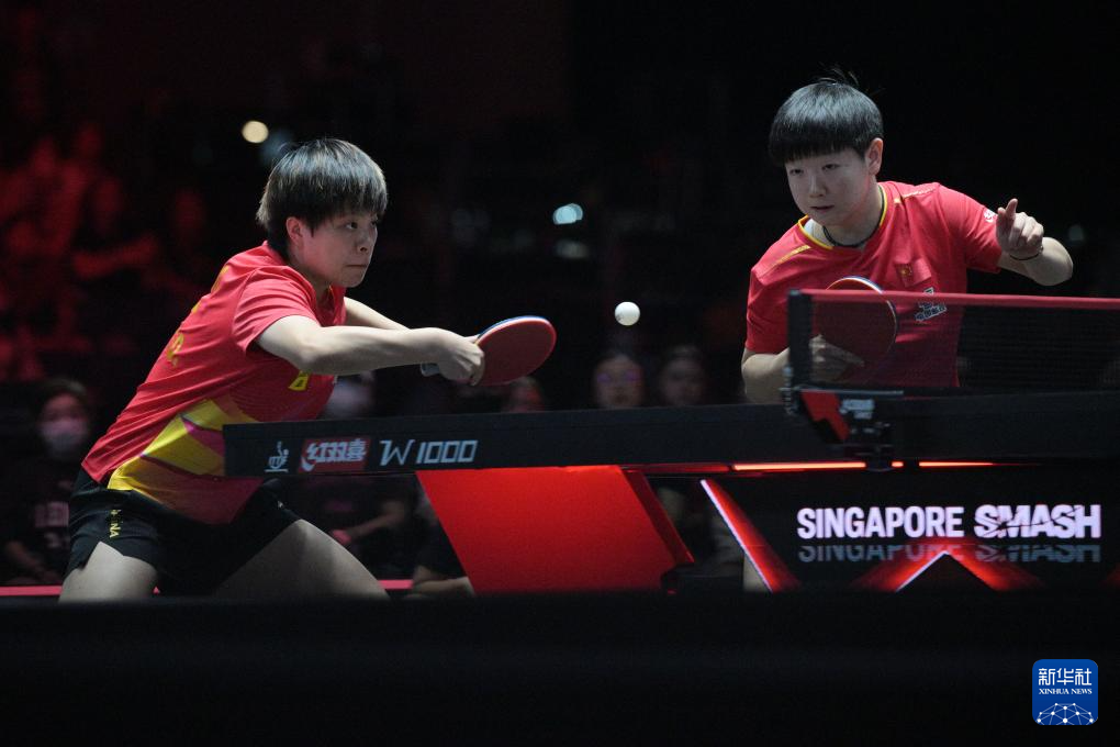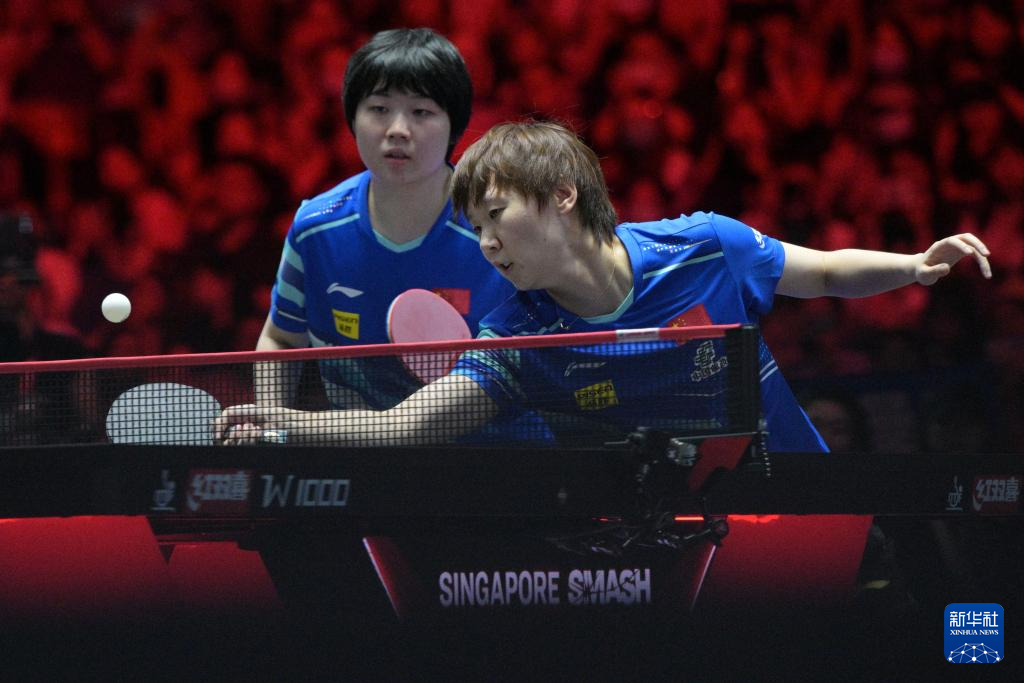 当日,在世界乒乓球职业大联盟(WTT)新加坡大满贯女双决赛中,中国组合王曼昱/蒯曼3比2战胜中国组合孙颖莎/王艺迪,获得冠军。