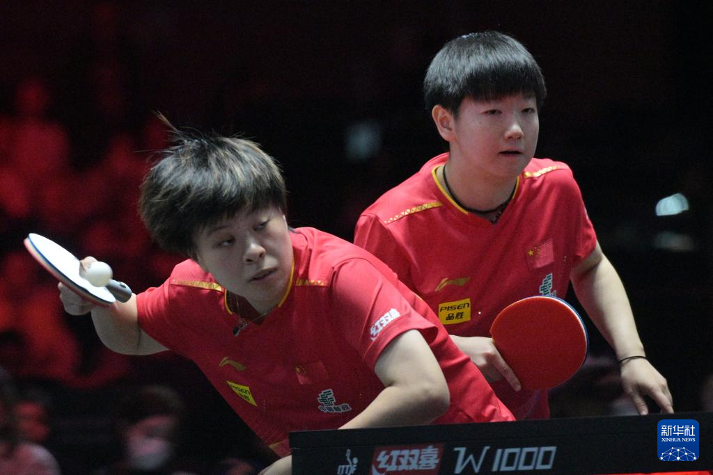 2月8日,孙颖莎/王艺迪(左)在比赛中。