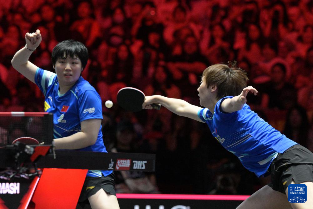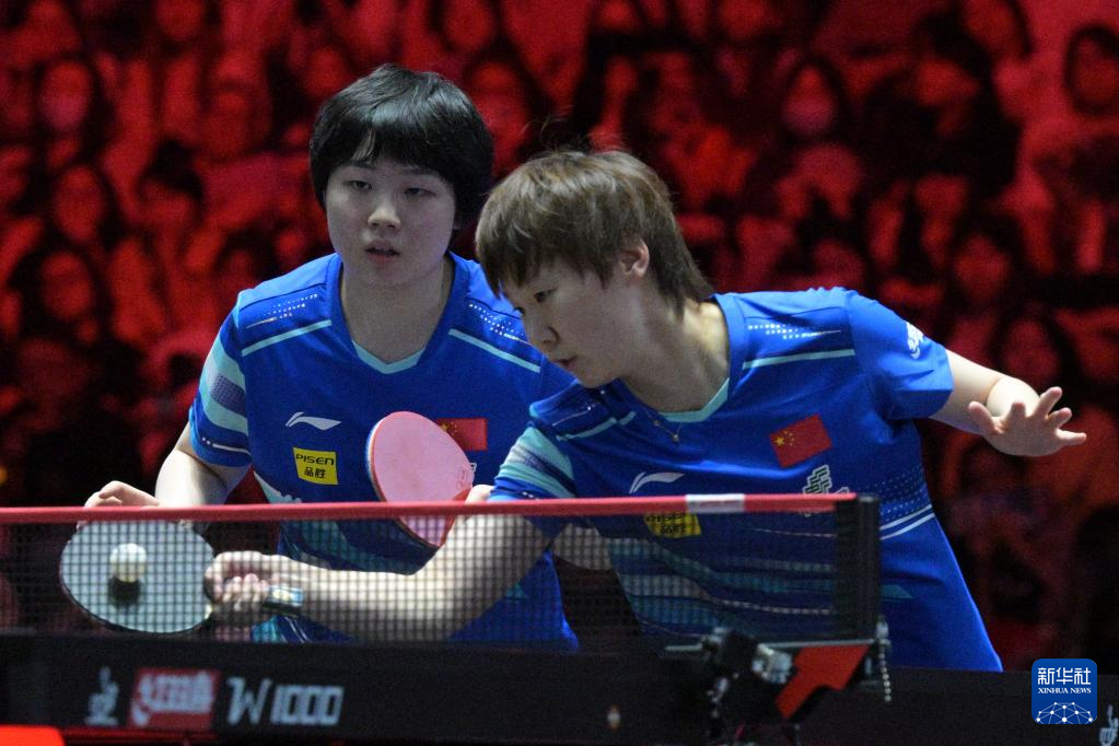2月8日,孙颖莎(右)/王艺迪在比赛中。
