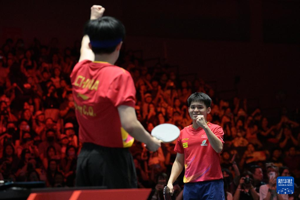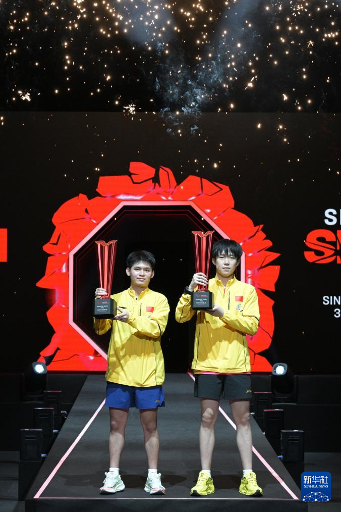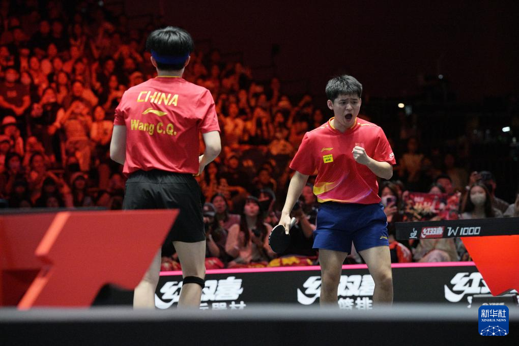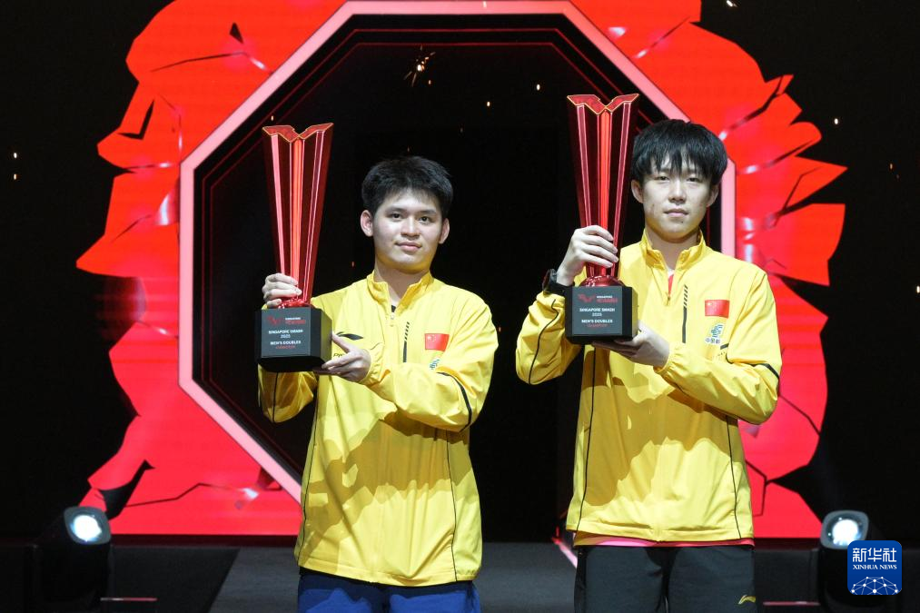 当日,在世界乒乓球职业大联盟(WTT)新加坡大满贯男双决赛中,中国组合王楚钦/林诗栋3比0战胜中国台北组合林昀儒/高承睿,夺得冠军。