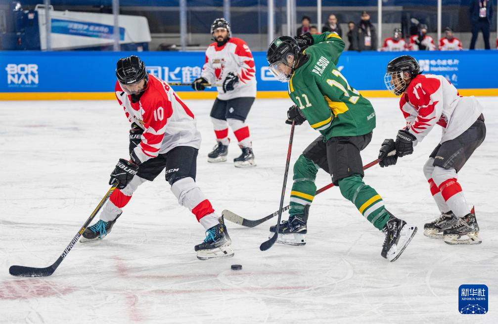 当日,在哈尔滨举行的第九届亚冬会男子冰球排位赛13-14名比赛中,中国澳门队和巴林队在常规时段战成3比3平。最终中国澳门队在加时赛中通过金球制胜4比3战胜巴林队。
