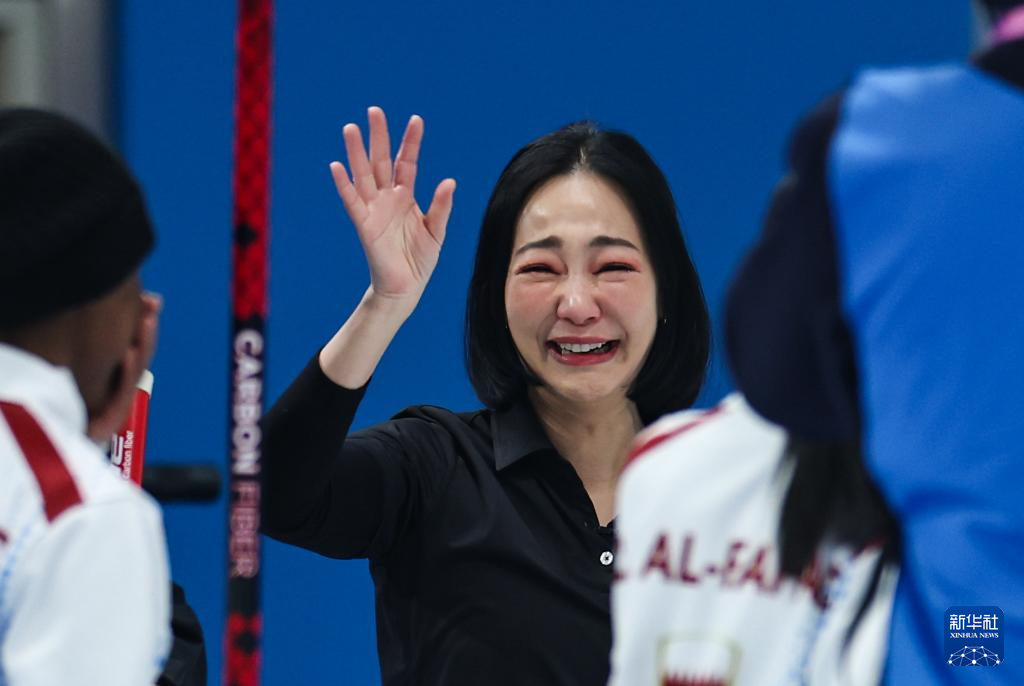 2月12日,泰国队选手甘雅·娜查纳隆在赛后激动落泪。最终,泰国队10比1战胜卡塔尔队。