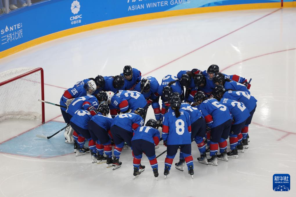当日,在哈尔滨举行的第九届亚冬会女子冰球小组赛A组比赛中,韩国队对阵哈萨克斯坦队。