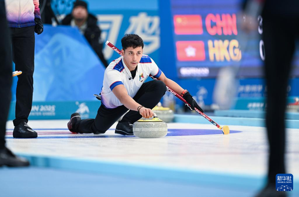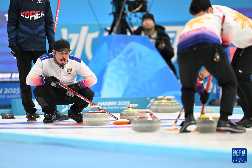 当日,在哈尔滨举行的第九届亚冬会冰壶男子金牌赛中,韩国队对阵菲律宾队。