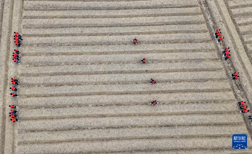 2月19日,在广西兴业县葵阳镇一处农田,学生们在进行越野接力赛(无人机照片)。新华社记者 曹祎铭 摄