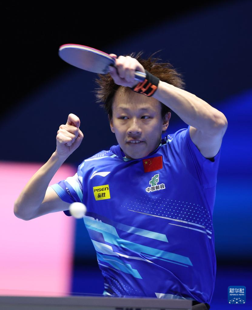 2月22日,张本智和在比赛中回球。