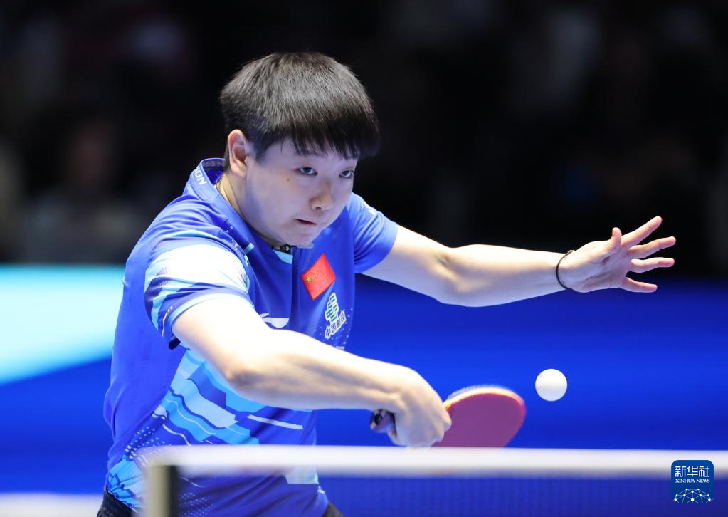 2月22日,孙颖莎在比赛中回球。