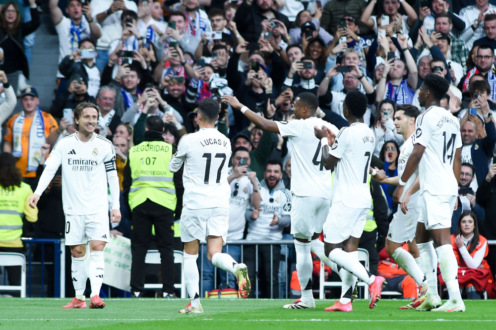 本轮坐镇伯纳乌的皇马在开场后打得有声有色。第41分钟,主队的角球被对方解围,老将莫德里奇禁区外停球后一脚怒射打开局面,皇马1:0领先。