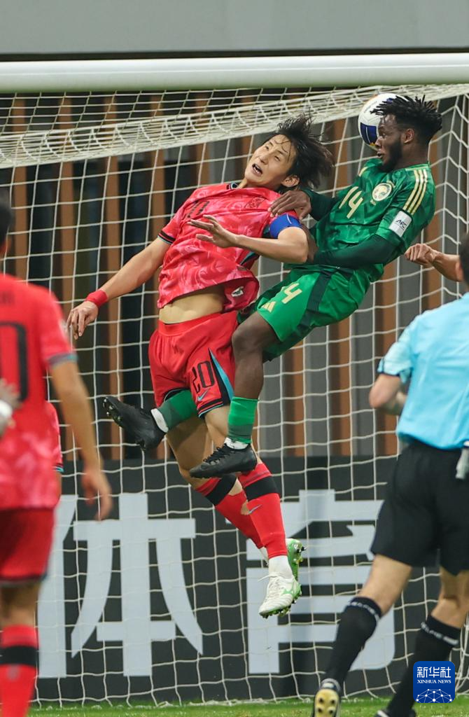 2月26日,沙特阿拉伯队球员萨乌德·马哈茂德·通布克蒂(右)与韩国队球员金浩镇在比赛中拼抢。