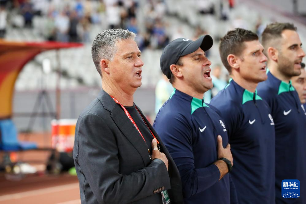 3月1日,澳大利亚队主教练特雷弗·摩根(左一)在比赛前。
