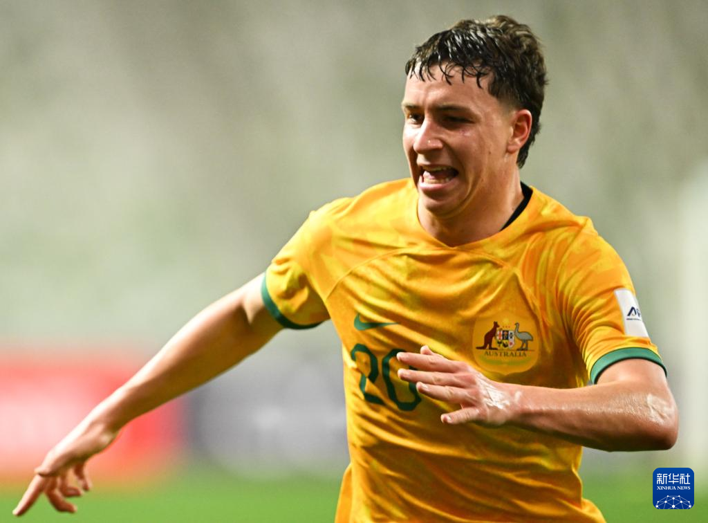 3月1日,澳大利亚队球员路易斯·阿戈斯蒂在比赛中庆祝进球。