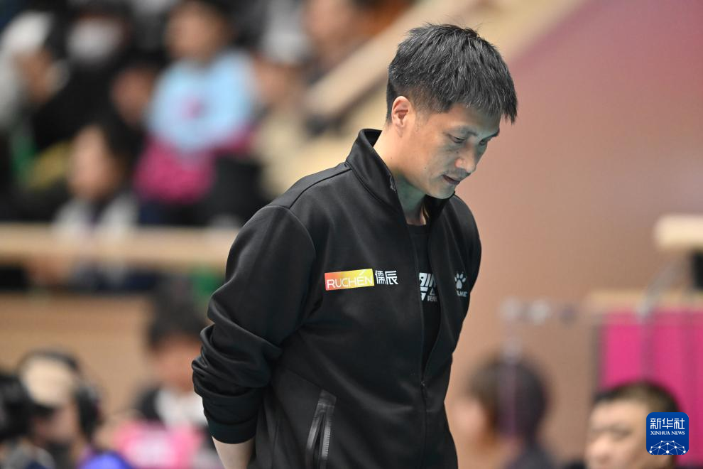 3月6日,山东松山小镇队主教练张启勇在场边思考。
