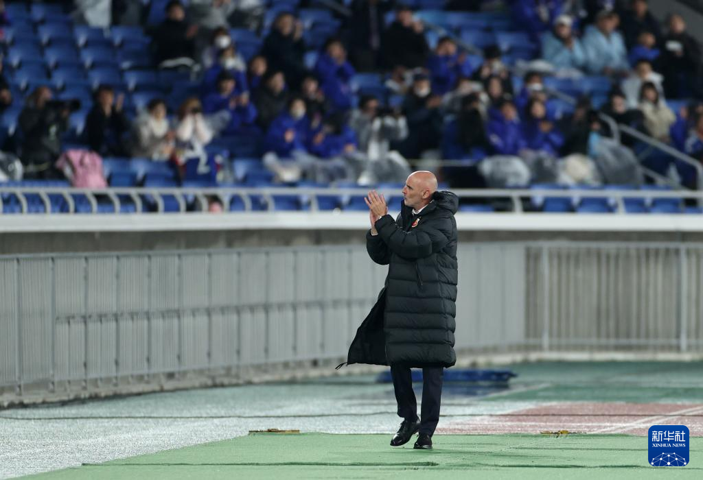 3月11日,上海海港队主教练穆斯卡特在比赛后向横滨水手队球迷致意。此前,穆斯卡特曾为横滨水手队主教练。