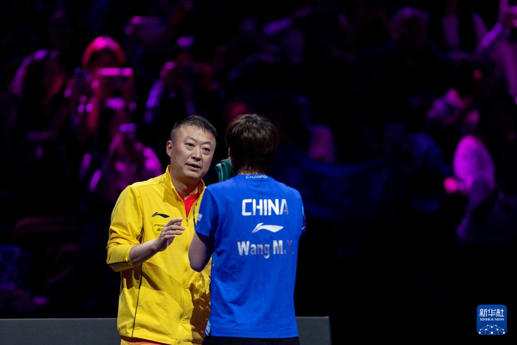 3月12日,教练马琳(左)在比赛间隙指导王曼昱。