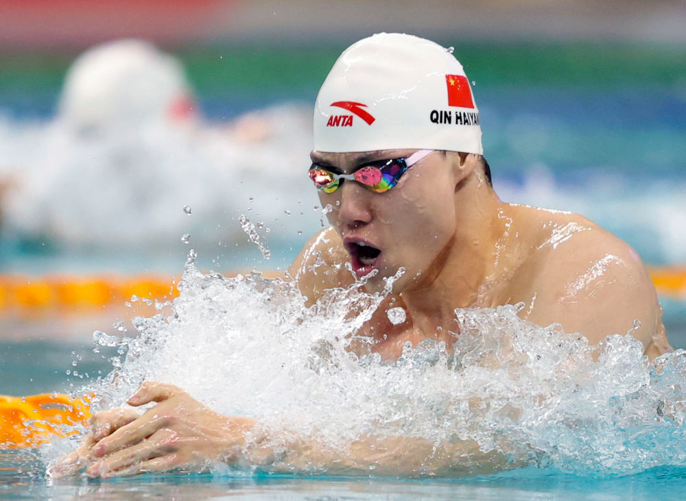 男子200米蛙泳比赛中,覃海洋展现出良好状态,游出2分07秒44的成绩,以领先第二名2秒多的较大优势夺冠。江苏队的董志豪和山东队的王骏腾分获第二、三名。