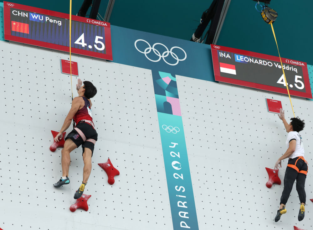 速度攀岩在巴黎奥运会上首次单独设项,伍鹏当时以4秒77的成绩创造新的男子全国纪录并获银牌,该成绩与冠军成绩仅相差0.02秒,与世界纪录仅差0.03秒。