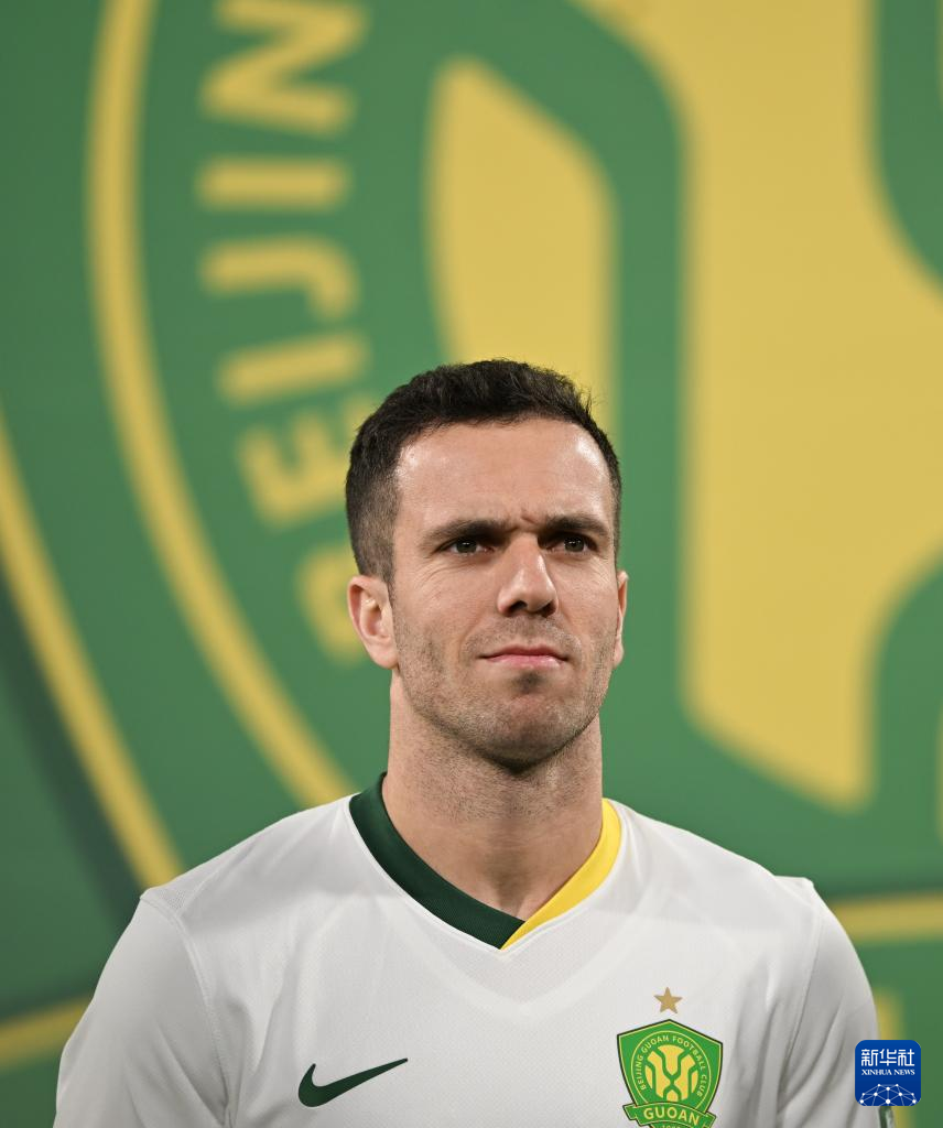 4月2日,北京国安队球员塞尔吉尼奥在比赛出场仪式上。