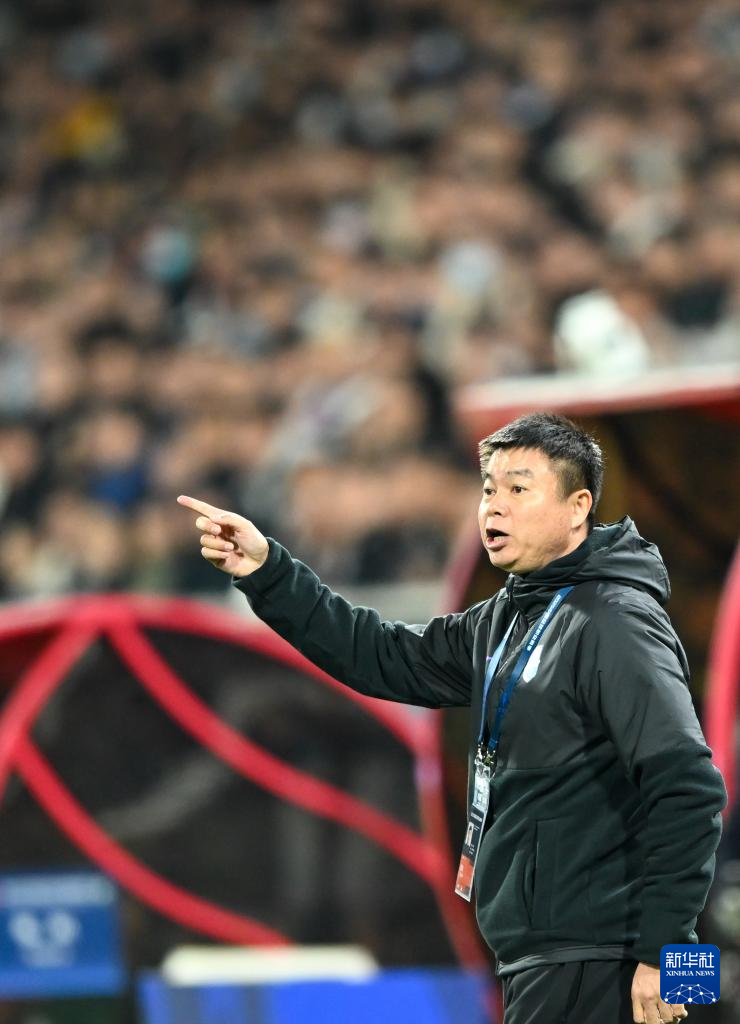 4月2日,天津津门虎队主教练于根伟在场边指挥。
