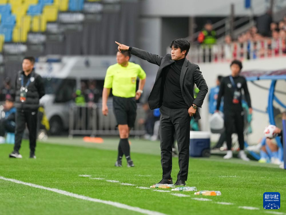 4月6日,成都蓉城队主教练徐正源在比赛中指挥。
