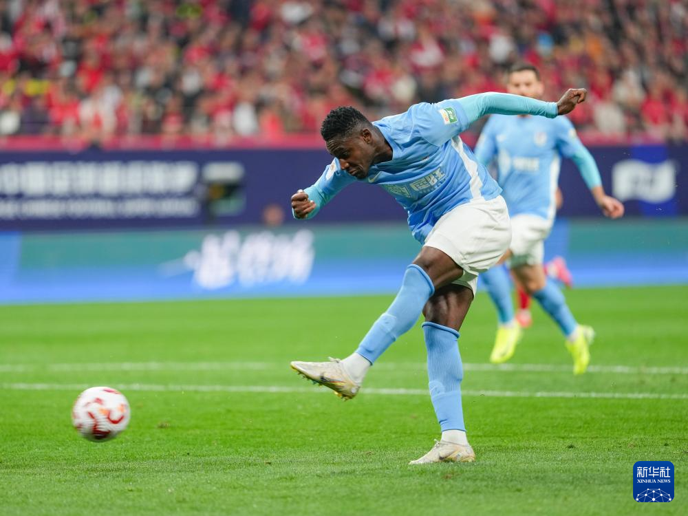 4月6日,大连英博海发队球员马莱莱在比赛中射门。