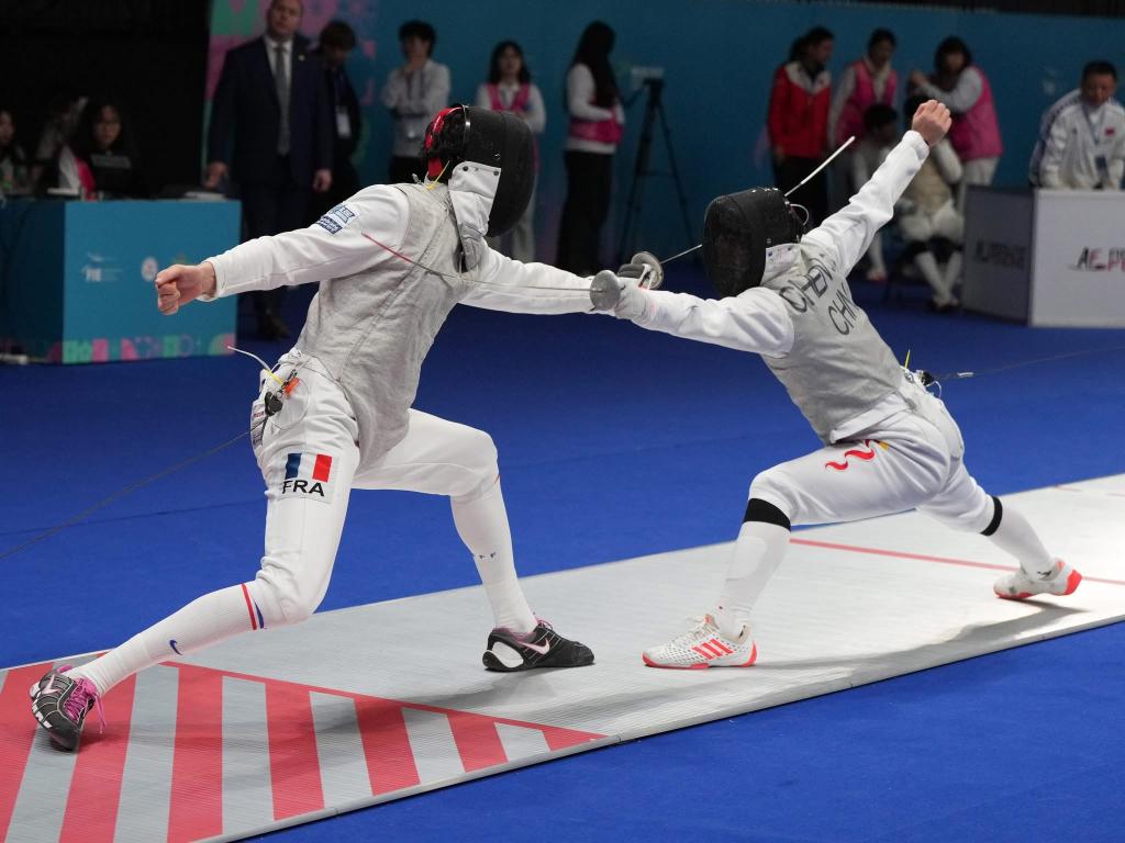 铜牌赛面对法国队,本赛季曾夺得青年世界杯曼谷站团体金牌的中国队打得非常顽强,在31:35落后的情况下,倒数第二个出场的吕惟乔将比分追至39:40。他赛后说,当时想反正已经落后那么多了,就一剑一剑去拼。“今天对自己挺满意的,很耐心,也发挥出了应有的水平。”