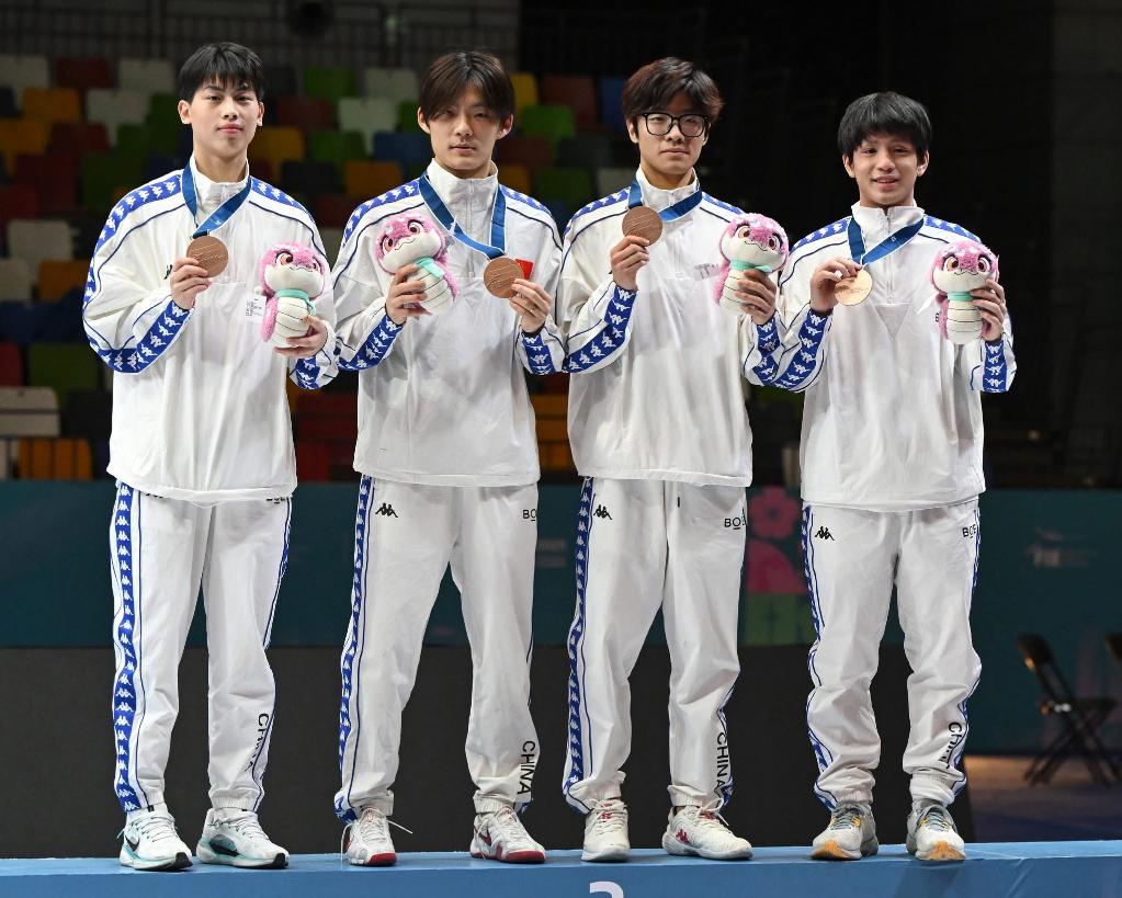 郭一凡、刘子豪、吕惟乔、陈江河组成的中国队在青年组男花团体赛中一路闯进四强。半决赛中,他们以41:45落败。