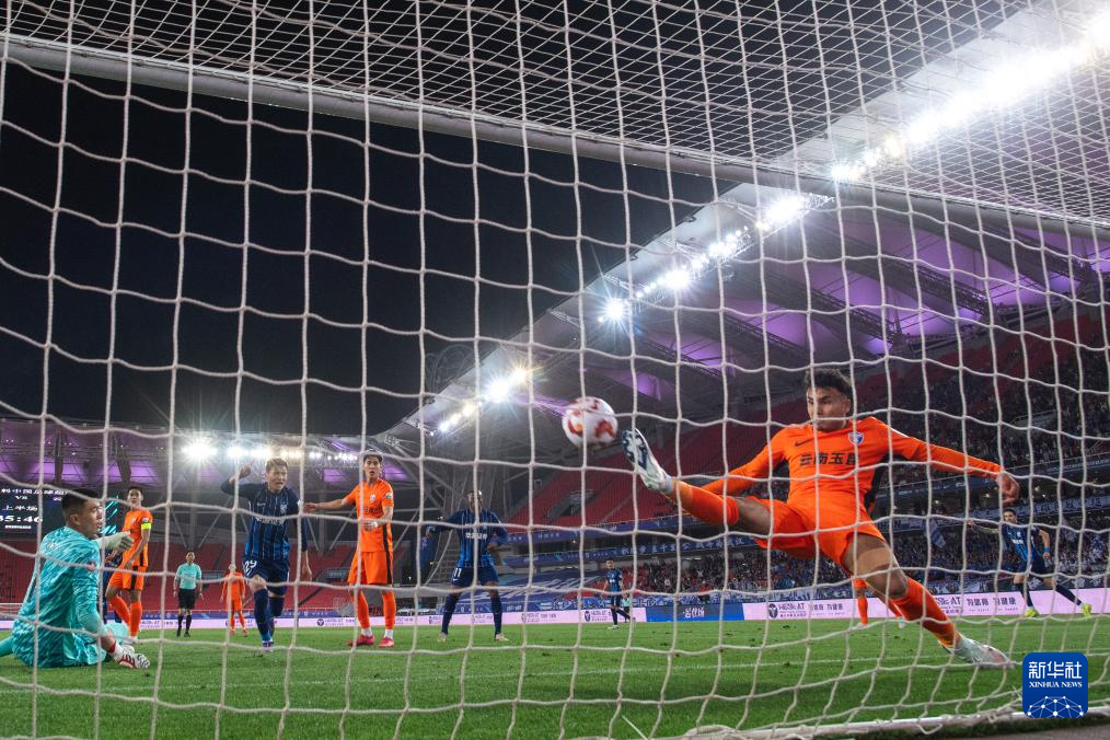 4月12日,云南玉昆队守门员马镇在比赛中扑救失利。