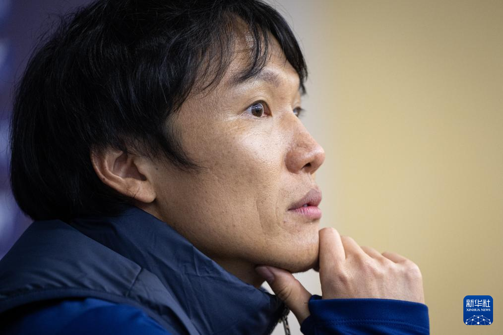 4月12日,武汉三镇队代理主教练邓卓翔在赛后新闻发布会上。