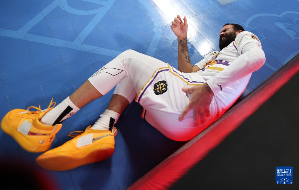 4月14日,北京控股队球员里勒在比赛中受伤倒地。