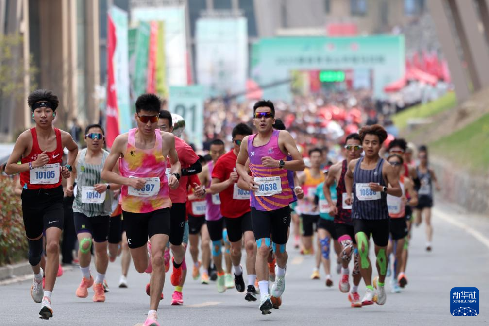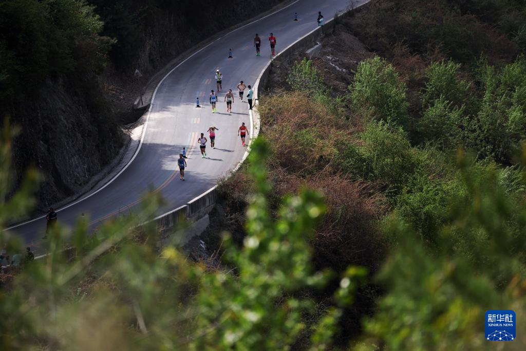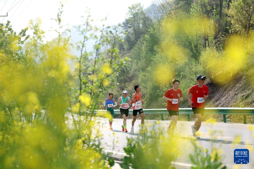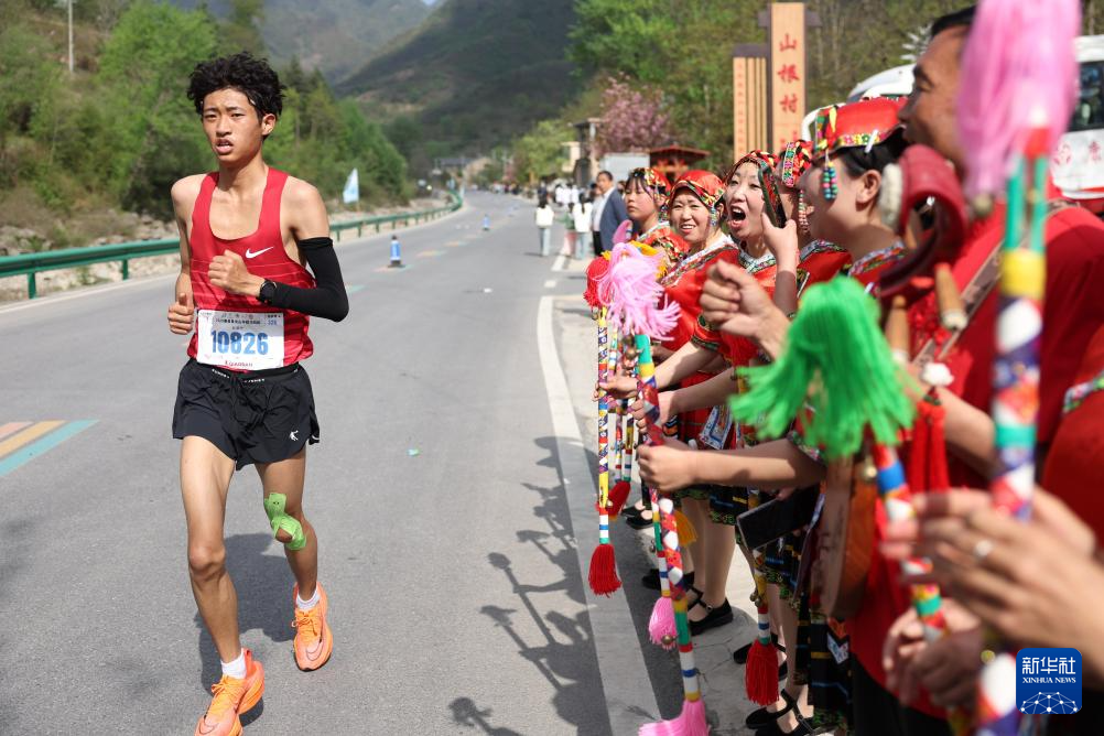 4月20日,参赛选手在比赛中。当日,2025康县青龙山半程马拉松在甘肃省陇南市康县鸣枪开跑。新华社记者 陈斌 摄