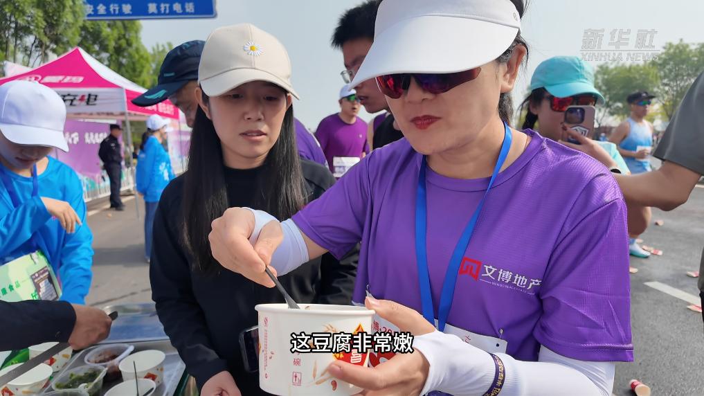 补给站有烧鸡、驴肉、砖路豆腐等当地特色美食,让包括记者在内的吃货跑者流连忘返。