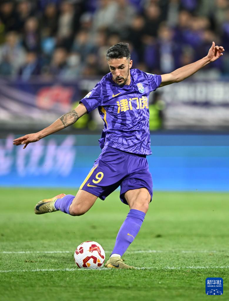 4月20日,天津津门虎队球员基莱斯在比赛中射门。