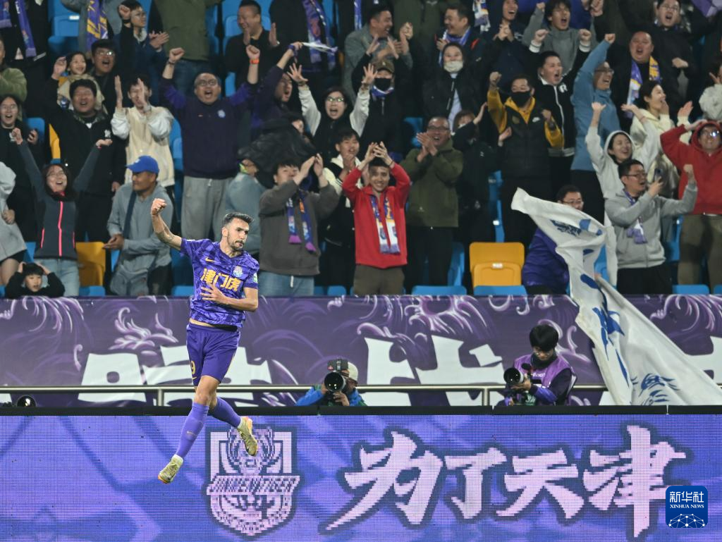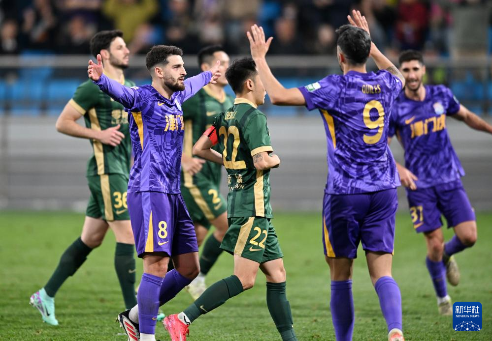 当日,在天津举行的2025赛季中国足球超级联赛第八轮比赛中,天津津门虎队主场2比0战胜浙江俱乐部绿城队。