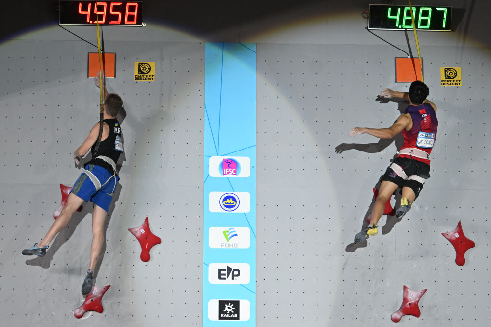 2025攀岩世界杯速度项目揭幕战:中国队包揽男、女冠军-新华网