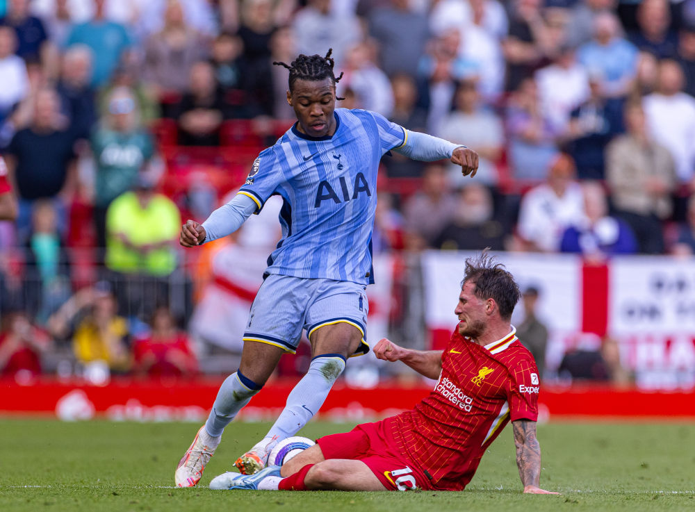 利物浦当天打平即可夺冠,但开局并不顺利。索兰科第12分钟头槌建功,帮助热刺取得领先。不过,志在主场夺冠的利物浦很快还以颜色,第16分钟,索博斯洛伊下底横传,迪亚斯门前包抄打空门得手,将比分扳平。8分钟后,麦卡利斯特用一记精彩的远射助主队2:1反超。第34分钟,加克波在禁区内推射破门,将比分改写为3:1。