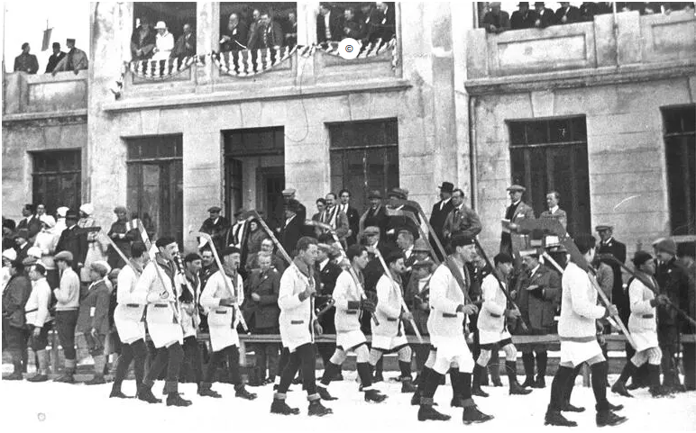 1924年1月25日,当清晨的第一缕阳光照在山谷间,所有人终于松了一口气!来自17个国家的258名运动员聚集到了霞慕尼市政厅前,他们带着各自的运动装备,一路游行至新建成的户外冰场,队伍中混杂着当地的登山向导、其他体育俱乐部的人士(甚至还有当地足球队的队员)、以及滑雪学校的代表。不过所有这些“外人”只能来到冰场外,最后的开幕仪式只有运动员才能参加。