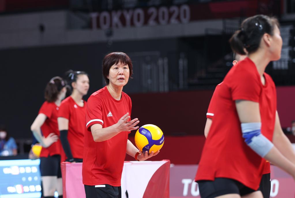 2021年7月21日,中国女排在东京有明体育馆进行训练,备战东京奥运会比赛。新华社记者丁汀摄