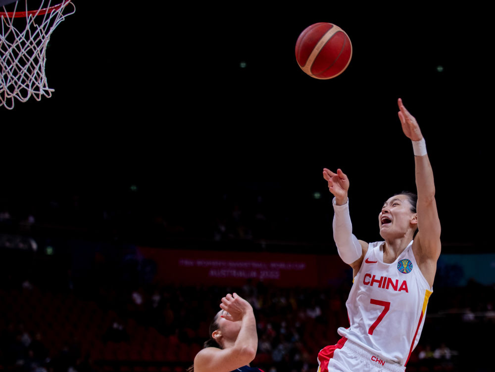 图为杨力维(右)在2022女篮世界杯四分之一决赛中。新华社发(胡泾辰摄)
