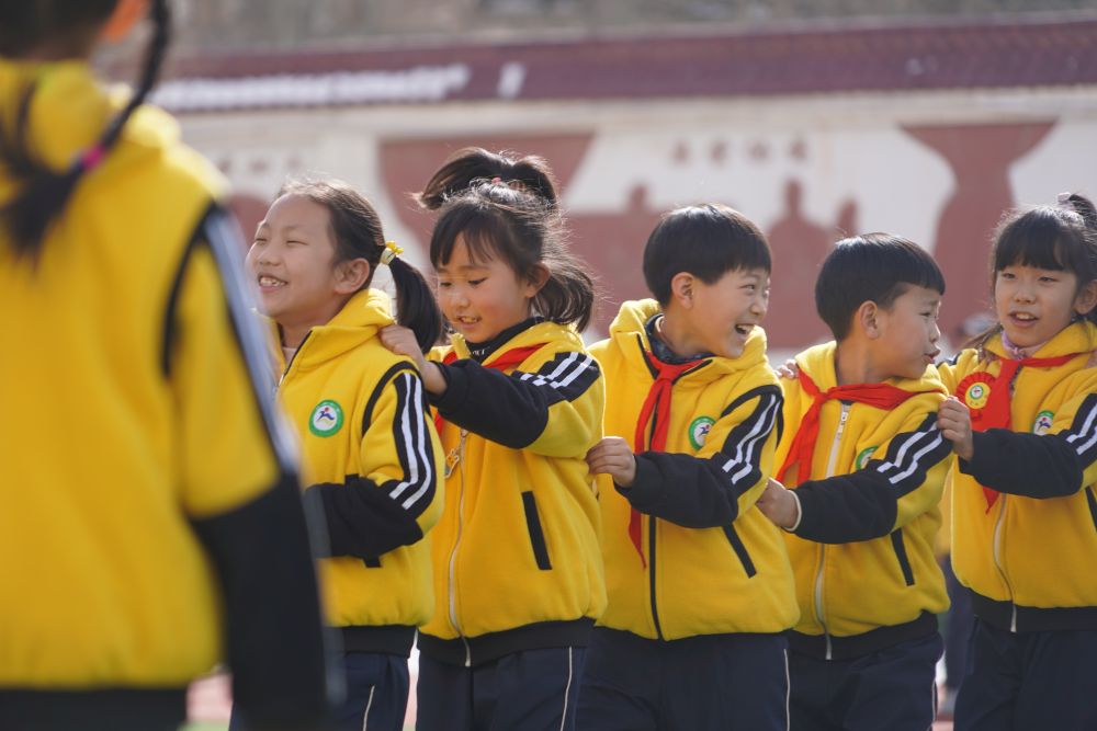 一遍又一遍的练习让大家动作越来越标准。一声集合哨后,罗秋霞带着学生们开始进行小游戏。阵阵欢笑声中,同学们自由放松地奔跑,线下体育课让同学们异常兴奋。
