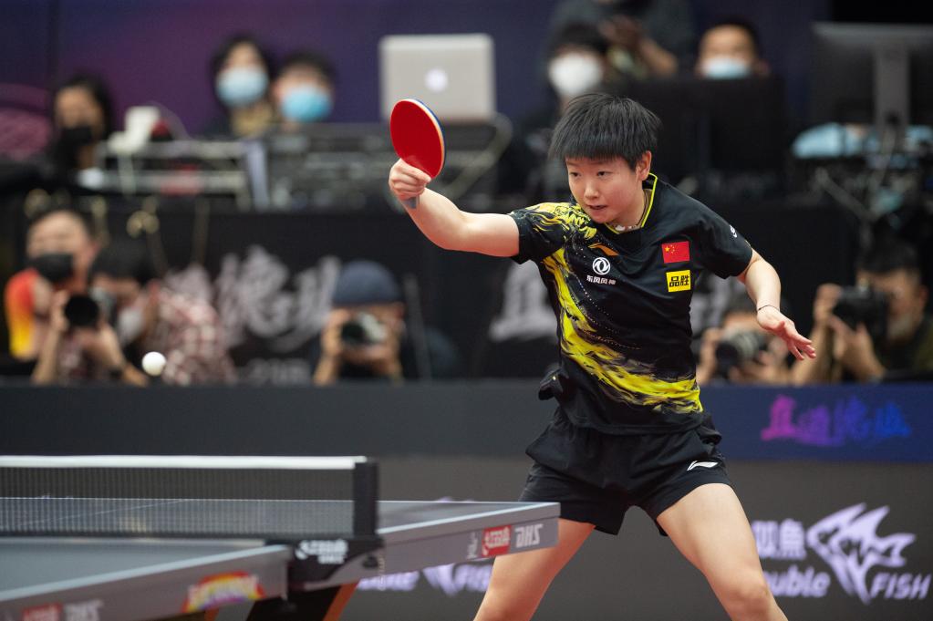 孙颖莎在比赛中回球。新华社记者 陈钟昊 摄