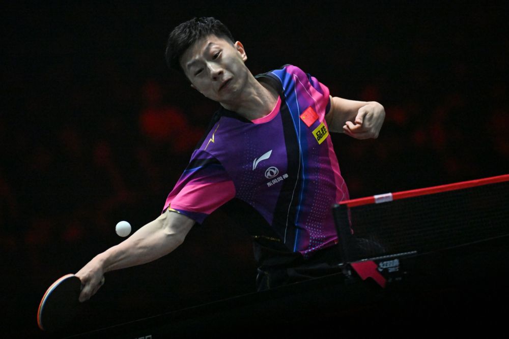 3月16日,马龙在比赛中回球。新华社发(邓智炜摄)