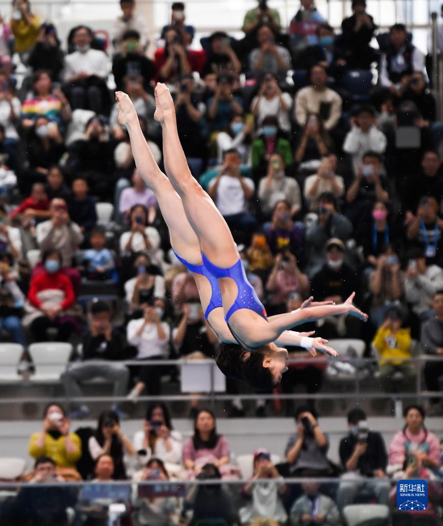 当日,在上海举行的2023年全国跳水冠军赛女子双人10米跳台决赛中,全红婵(广东)/陈芋汐(上海)组合以362.04分的总成绩夺得冠军。